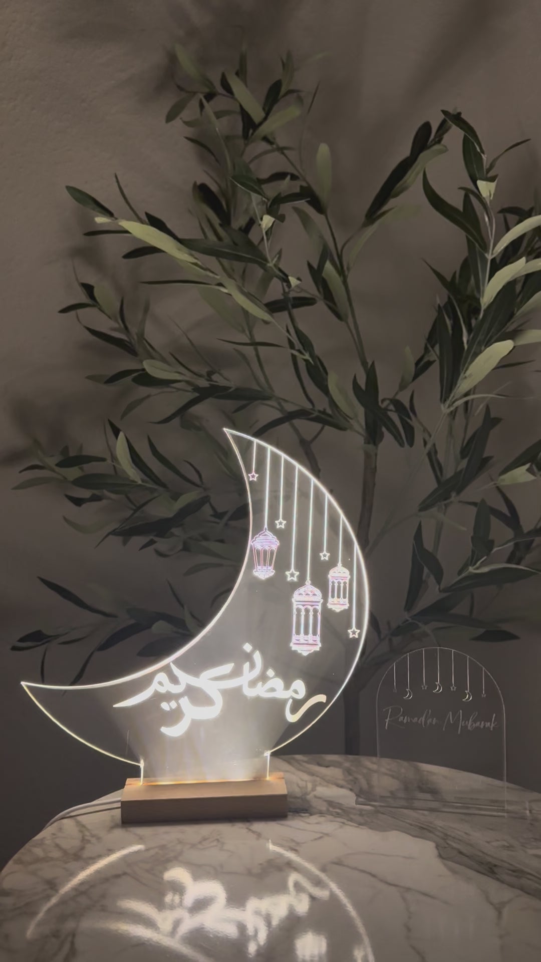 Exklusiv leuchtender Mond & personalisiertes Familienschild. Beides in das LED Holz einsetzbar 🌙